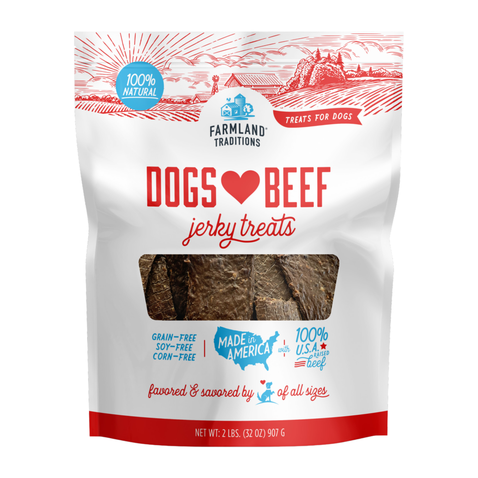 Farmland Traditions Beef Recipe Jerky treats are made in our own U.S. facility using only USA sourced and raised ingredients. Our simple recipe treats contain no corn, wheat, or soy, for a taste your dog is sure to love! Limited ingredient formula Check your local 99 Cents Only Stores for availability!